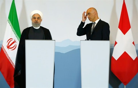 | Le président iranien Hassan Rohani (gauche) et le président de la Confédération helvétique, Alain Berset, ont donné une conférence de presse à Berne, le 3 juillet. |