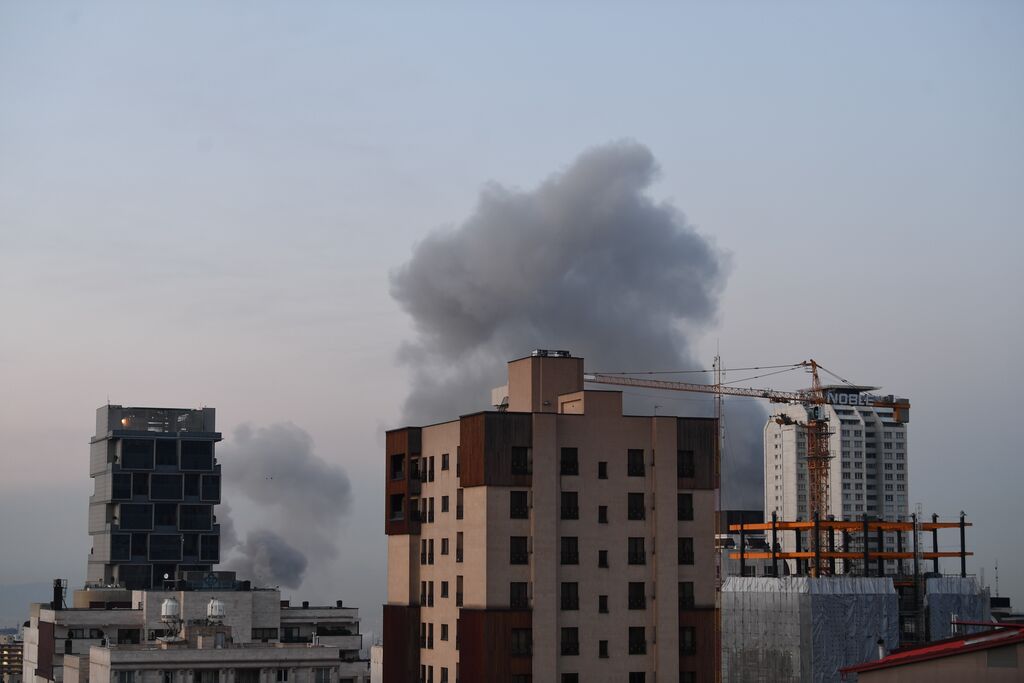 | De la fumée s’élève après des explosions à Téhéran en Iran, le 1er avril. |