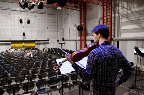 | Le violoniste français Diego Tosi répète le 25 mars 2013 à l'Ircam à Paris. |
