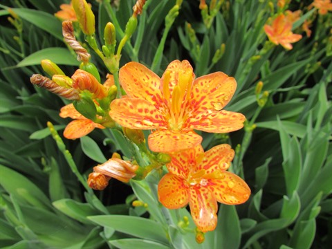 Ses fruits sont capsulaires, ovoïdes à trois valves et produisent des graines globuleuses bleu noir, brillantes. L’iris tigré pousse à l’Est de l’Asie, y compris Chine, Japon et Vietnam. La plante est aussi cultivée en Asie du Sud et Asie du Sud-Est, particulièrement Indonésie, Malaisie, Thaïlande, Cambodge et Laos.