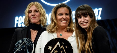 | La réalisatrice Lisa Azuelos (centre), les actrices Sandrine Kiberlain (gauche) et Camille Claris au Festival de l'Alpe d'Huez le 19 janvier. |
