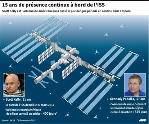 | L'ISS et les records de Scott Kelly et Gennady Padalka. |