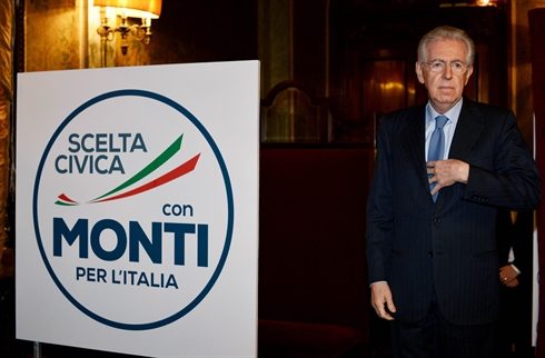| Le candidat Premier ministre, l'actuel chef de gouvernement Mario Monti |