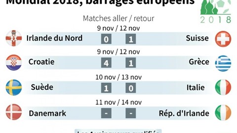 | Mondial 2018 : barrages européens. |