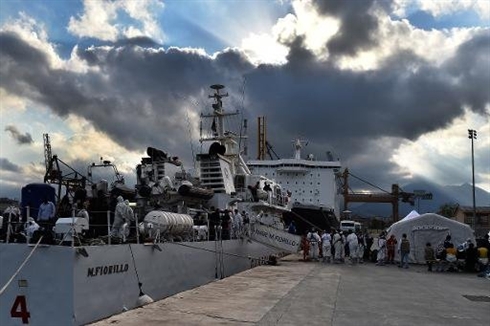 | Des migrants clandestins débarquent dans le port de Palerme après avoir été sauvés par les garde-côtes du "Fiorillo", qui participent à l'opération Mare Nostrum, le 20 octobre |