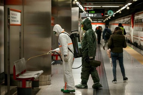 | Désinfection du métro de Madrid, le 20 mars en Espagne. |
