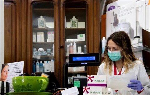 | Une pharmacienne dans le quartier Prati à Rome, le 23 mars. |