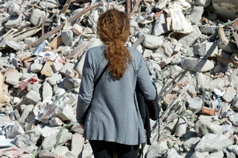 | Une femme devant des ruines à Amatrice, en Italie, le 26 août 2016 |
