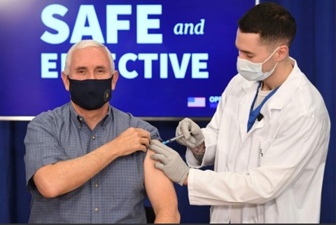 | Le vice-président américain Mike Pence se fait vacciner contre le COVID-19 à Washington, le 18 décembre. |