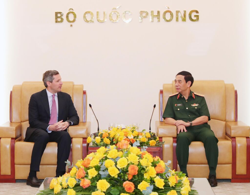 | Le ministre vietnamien de la Défense, Phan Van Giang (droite), reçoit le sous-secrétaire d’État italien à la Défense, Matteo Perego di Cremnago. |