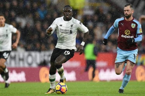 | Le Sénégalais de Liverpool, Sadio Mané, auteur d'un but sur le terrain de Burnley e 22e journée de Premier League, le 1er janvier. |