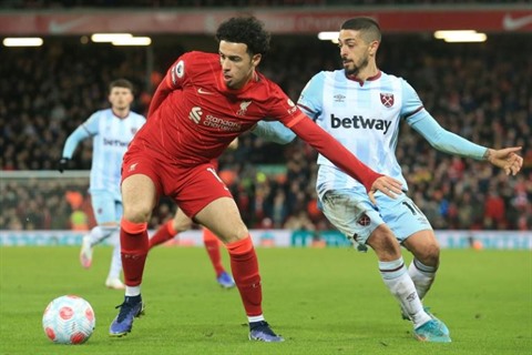Mais la suite a été plus compliquée, les Londoniens étant parfaitement organisés défensivement tout en se montrant dangereux en contre. Pablo Fornals a vu son lob sur Alisson sauvé juste devant la ligne par Alexander-Arnold (39e), Manuel Lanzini n'a pas trouvé le cadre sur un bon centre de Tomas Soucek (69e) et Michail Antonio a manqué de réactivité au moment de conclure (79e).