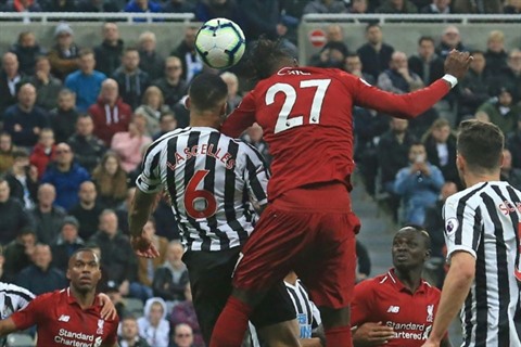 | Le joueur de Liverpool Divock Origi (No 27), buteur lors de la victoire 3-2 à Newcastle en 37e journée de Premier League le 4 mai. |