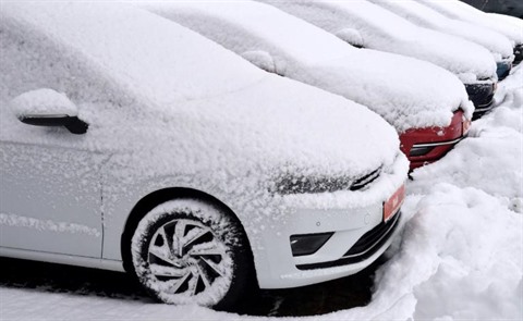 | Des voitures neuves devant une concession automobile à Olching (Allemagne) le 9 janvier. |