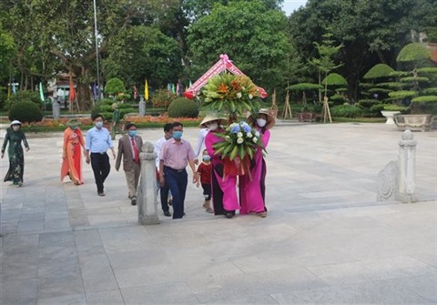 | Offrir des fleurs à la mémoire du Président Hô Chi Minh dans la zone de vestiges national spécial de Kim Liên, à Nghê An (Centre), le 19 mai. |