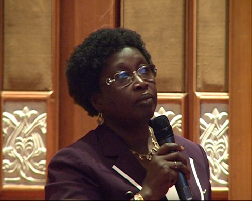 | Mme Angèle Bonané lors du forum «Vietnam-Afrique-Moyen-Orient, nouveau partenariat pour le développement», le 7 septembre à Hanoi. |