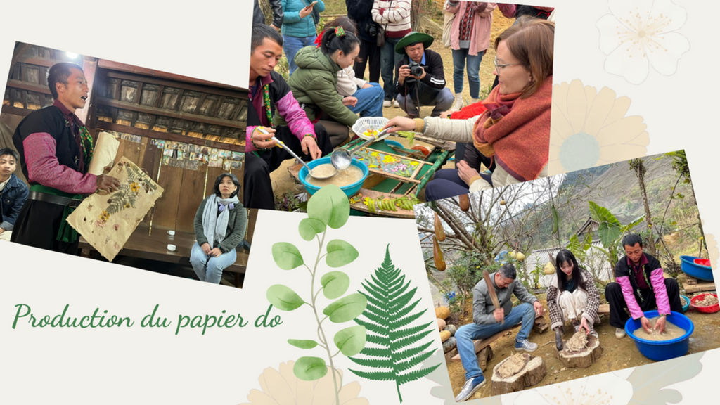 | Les visiteurs découvrent l'art de production du papier "do" des H'mông dans la province de Son La (Nord). |