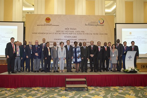 | Photo de famille des intervenants au séminaire sur les coopérations économiques Vietnam - Afrique, le 6 décembre à Hanoï. |