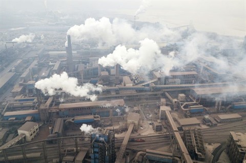 | Des cheminées d'usines à Hancheng, le 17 février en Chine |