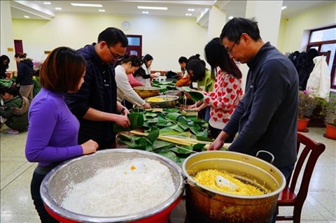 Chaque année, l’ambassade du Vietnam en Chine organise une cérémonie pour célébrer le Têt traditionnel pour la communauté des Vietnamiens dans ce pays. Pour le Têt du Tigre, la cérémonie est plus sobre mais toujours avec la préparation des plats traditionnels dont le bánh chung (gâteau carré de riz gluant).