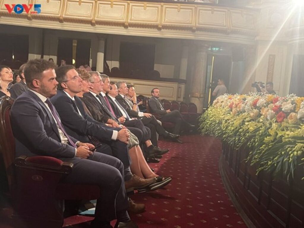 C’est un public des grands soirs qui avait fait le déplacement, avec tout de même l’assistant du ministre des Affaires étrangères, Nguyên Minh Vu, et le vice-ministre de la Culture, des Sports et du Tourisme, Ta Quang Dông, côté vietnamien, le ministre-président de la communauté française de Belgique, Pierre-Yves Jeholet, et le chef de la Délégation Wallonie-Bruxelles au Vietnam, Nicolas Derveaux, côté belge.