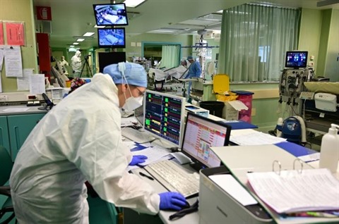 Un membre du personnel médical dans une unité COVID-19 à l'hôpital Bolognini de Seriate, Bergame (Italie) le 12 mars. Photo : AFP/VNA/CVN