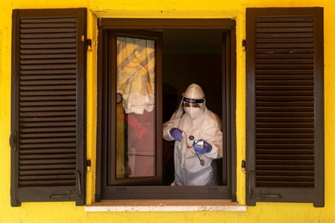 | Un médecin chez un patient malade du COVID-19 à Cuneo (Italie), le 29 mars. |
