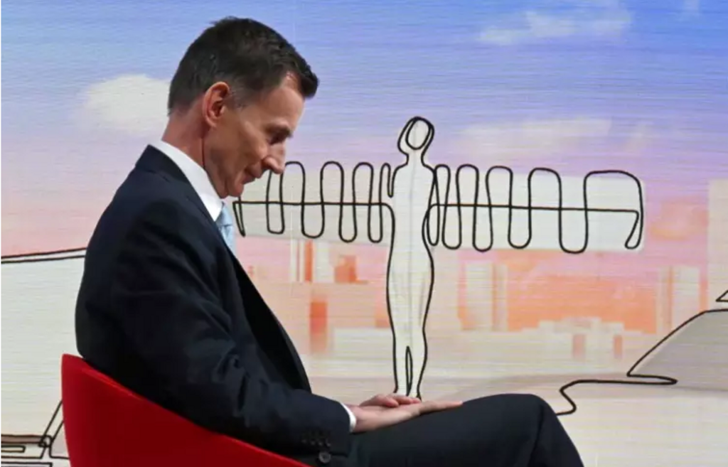 | Le Chancelier de l'Echiquier britannique Jeremy Hunt participant à une émission politique de la BBC, le 12 mars. |