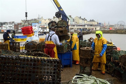 | Des pêcheurs dans le port de Bridlington, dans le Nord-Est de l'Angleterre, le 11 décembre. |