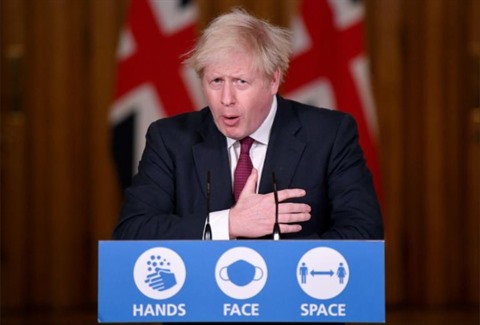 | Le premier ministre britannique Boris Johnson tient une conférence de presse au 10 Downing Street à Londres le 19 décembre. |