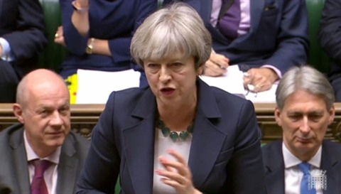 | La Première ministre britannique, Theresa May, lors d'une intervention devant la Chambre des communes le 6 décembre à Londres. |