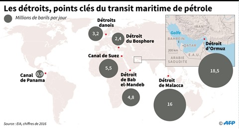 La région du Golfe et du détroit d'Ormuz, par où transite un tiers du pétrole acheminé par voie maritime sur la planète, se trouve au cœur des tensions, sur fond de bras de fer entre l'Iran et les États-Unis.