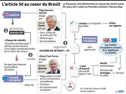 | Schéma du mécanisme du retrait unilatéral de l'UE que compte déclencher Royaume-UNI avant fin mars 2017 |