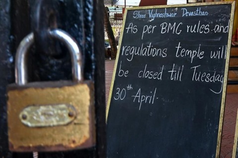 | Un panneau informant de la fermeture d'un temple de Ganesh en Inde à Bombay, le 5 avril. |