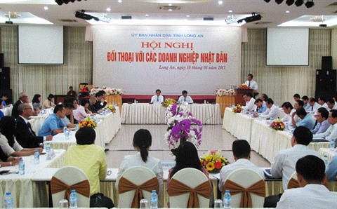 | Dialogue entre des autorités de la province de Long An (delta du Mékong) et des représentants des entreprises japonaises, le 10 janvier dans cette province. |