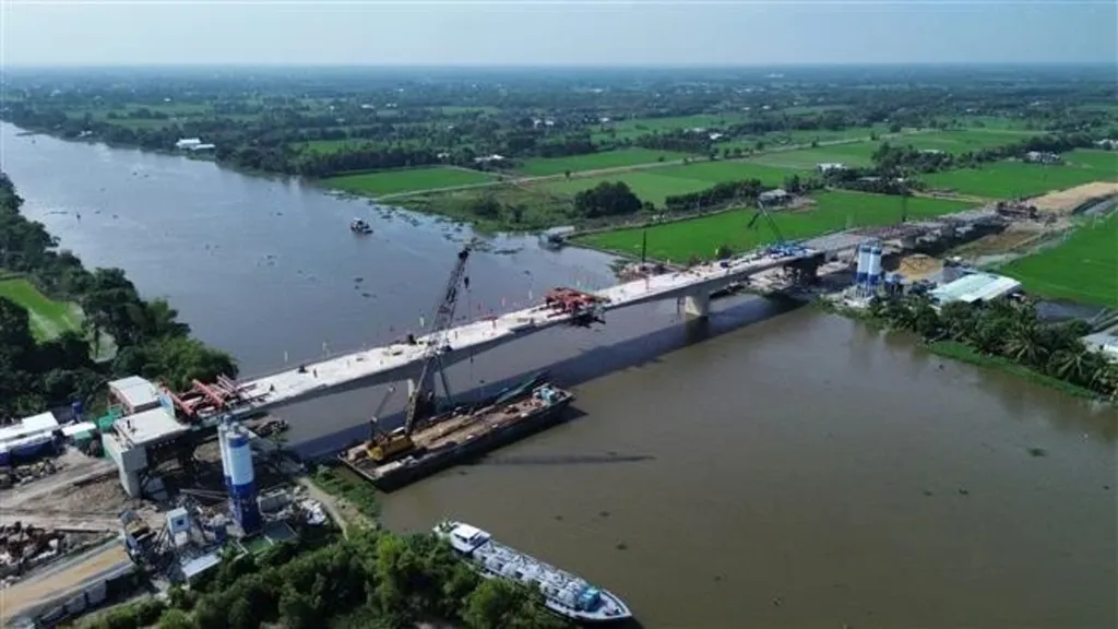 Le pont Vàm Co Dông, qui enjambe la rivière éponyme, fait une longueur totale de près de 536 m. Il représente un investissement de plus de 322 milliards de dôngs. Les travaux ont commencé en avril 2023.