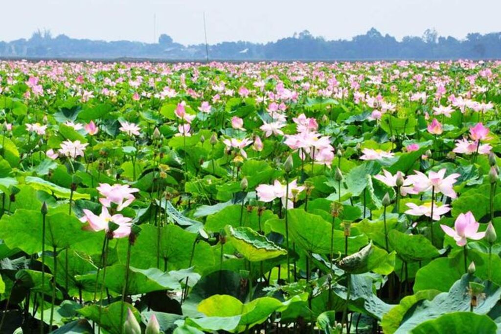| Le champ de lotus dans la Réserve de zones humides de Lang Sen. |