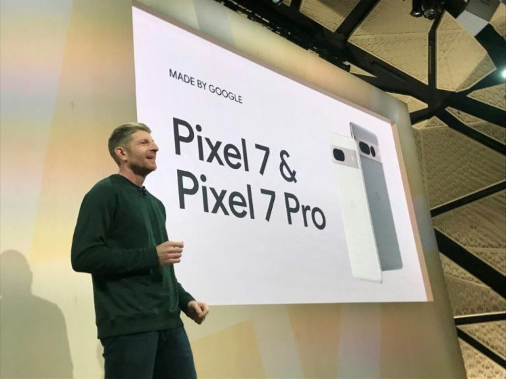 | Le nouveau smartphone Pixel 7 de Google, présenté jeudi 6 octobre à Brooklyn. |