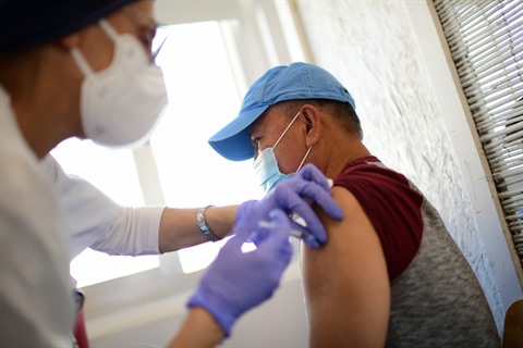 | Vacciner un habitant à Tel Aviv, Israël. |