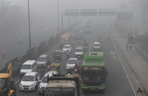 | Embouteillage à New Delhi lors d'un épisode de forte pollution, le 8 novembre en Inde. |