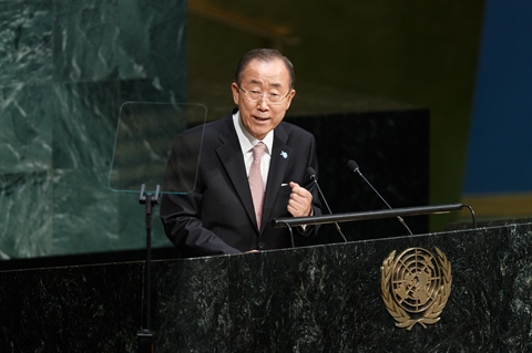 | Le secrétaire général de l'ONU, Ban Ki-moon, le 25 septembre au siège de l'ONU. |