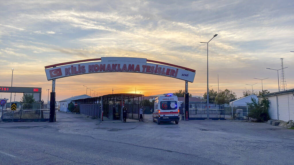 | Une ambulance arrive à la frontière entre la Turquie et la Syrie, après la mort d'un soldat turc à Kilis, dimanche 20 novembre. |