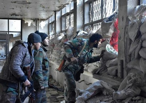 | Des soldats du régime syrien le 8 décembre dans un quartie d'Alep-Est. |