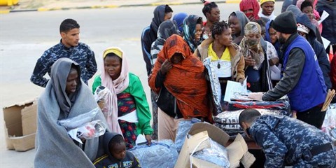 | Des migrants subsahariens lors d’une distribution de vêtements dans un camp de rétention de la banlieue de Tadjourah, à l’est de Tripoli, en Libye, le 5 décembre 2017. Photo : AFP/VNA/CVN |