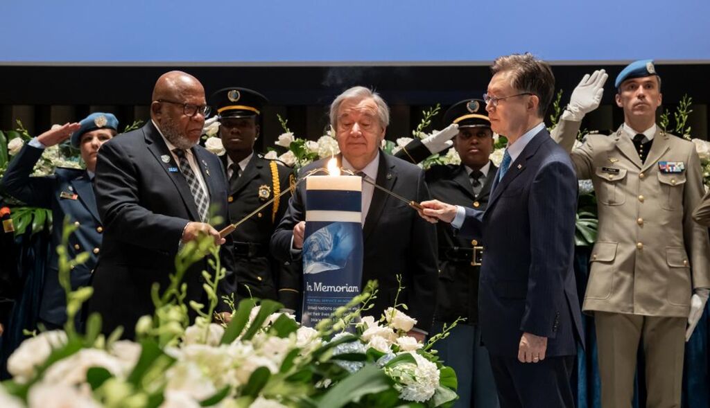 | Une cérémonie pour rendre hommage à des personnels onusiens ayant perdu la vie dans l'exercice de leurs fonctions en 2023. |