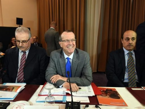 | L'allemand Martin Kobler, émissaire de l'ONU pour la Libye (centre), le 10 décembre à Tunis. |