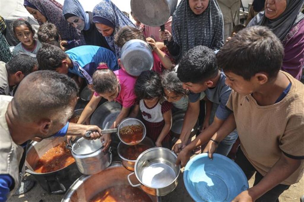 | Dans un centre de distribution d'aide alimentaire dans la bande de Gaza, le 3 juin. |