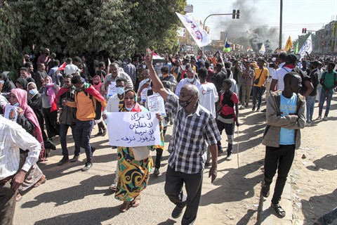 | Une manifestation en banlieue de Khartoum, au Soudan, |