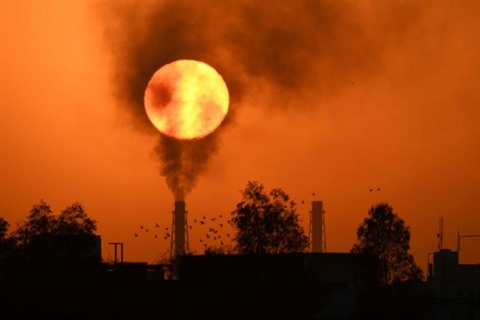 | Le soleil se couche sur une raffinerie de pétrole dans la ville de Nasiriyah, dans le Sud de l'Irak, le 8 mars. |