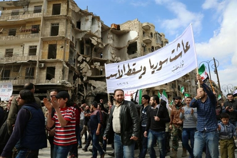| Manifestation à Alep, le 4 mars. |